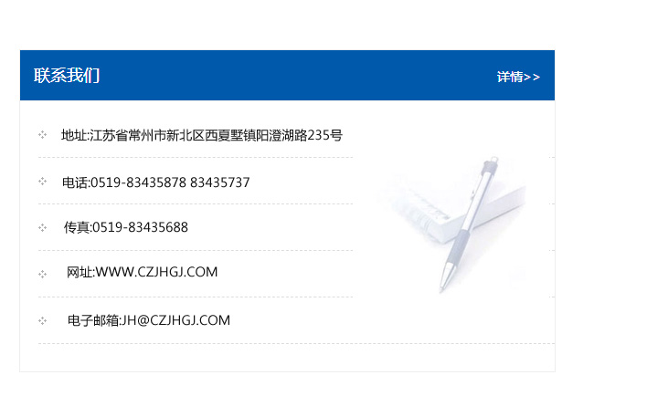 地址:常州市新北區友邦商務大廈1幢16、17層  電話:0519-85101652  傳真:0519-85112595  郵編:213022  網址:www.cz-jiayue_cn.yanermei.com  郵箱:xiajifengaa@163.com